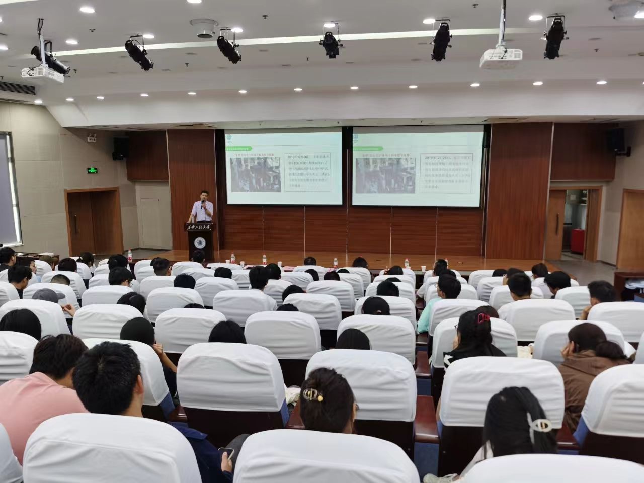 胡西民首先代表学院对组织此次专题培训的校领导和相关部门表示感谢,对刘涛总经理的讲座表示欢迎。他表示,学校高度重视安全稳定工作,学院党委严格落实校党委安排部署和相关职能部门有关实验室安全的各项要求,强化师生安全教育和实验室安全培训,做到人员覆盖、过程管控、责任落实、问题整改,让全体师生防范意识“入脑”、安全素养“上心”、应急本领“过硬”。会议特邀西安安备思软件有限公司总经理刘涛为师生作安全教育讲座,刘涛围绕海因西里安全法则、近年实验室安全事故案例解析、实验室安全基础理论、实验室安全隐患及紧急处置等内容,为现场师生做了详细的报告。他在报告中重点介绍了实验室用电安全、危化品管理及使用、消防安全、室内空气质量控制与防护、实验室安全体系建设等内容,还在现场与师生进行了热烈的互动讨论。臧国强就加强实验室安全管理、强化实验室安全整治等方面内容做了强调,并向全校实验室提出了“制度先行、问题导向、智慧引领、队伍支撑、浓厚氛围”的工作要求。