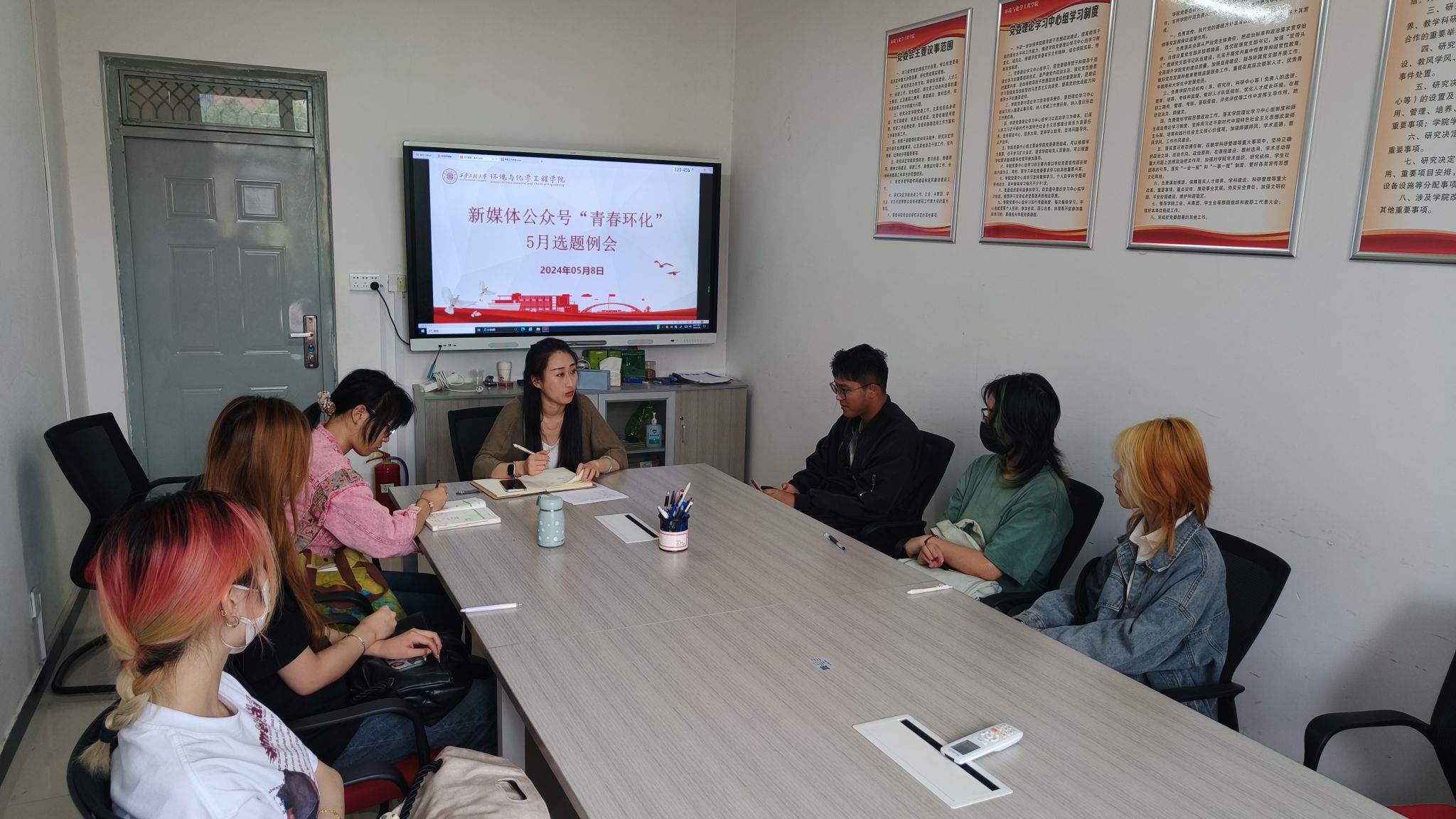 为进一步加强我们新媒体中心成员之间的协同配合,提升学院微信推送的质量与效率,2024年5月8日,我们新媒体中心在学院238会议室召开了五月工作例会。会议由辅导员任子瑜主持,新媒体中心微信运营部门全体成员参加此次会议。