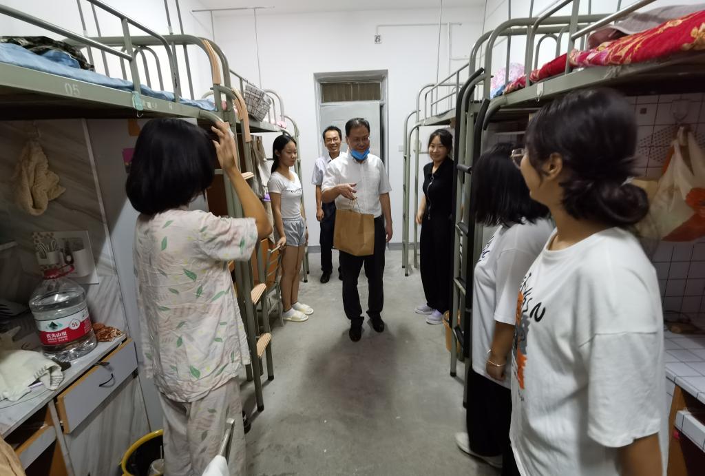 在中秋节到来之际,9月9日,我们院长张洛红、党委副书记林定武、辅导员贾天昱来到新生公寓,为2022级新生送上中秋节日祝福。