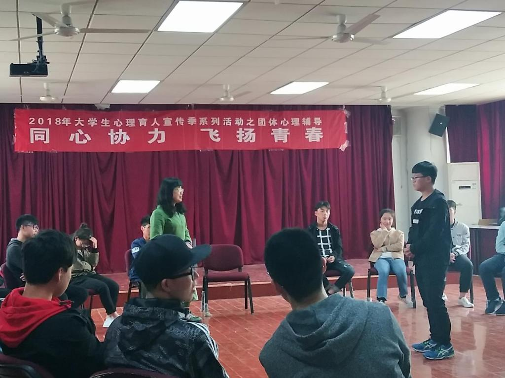 4月16日12:30,suncitygroup太阳官方网站2018年“同心协力,飞扬青春”团体心理辅导活动,参加本次活动有suncity太阳新城、城市学院以及机电工程学院的17级心理委员,活动由城市学院党委副书记袁群主讲。