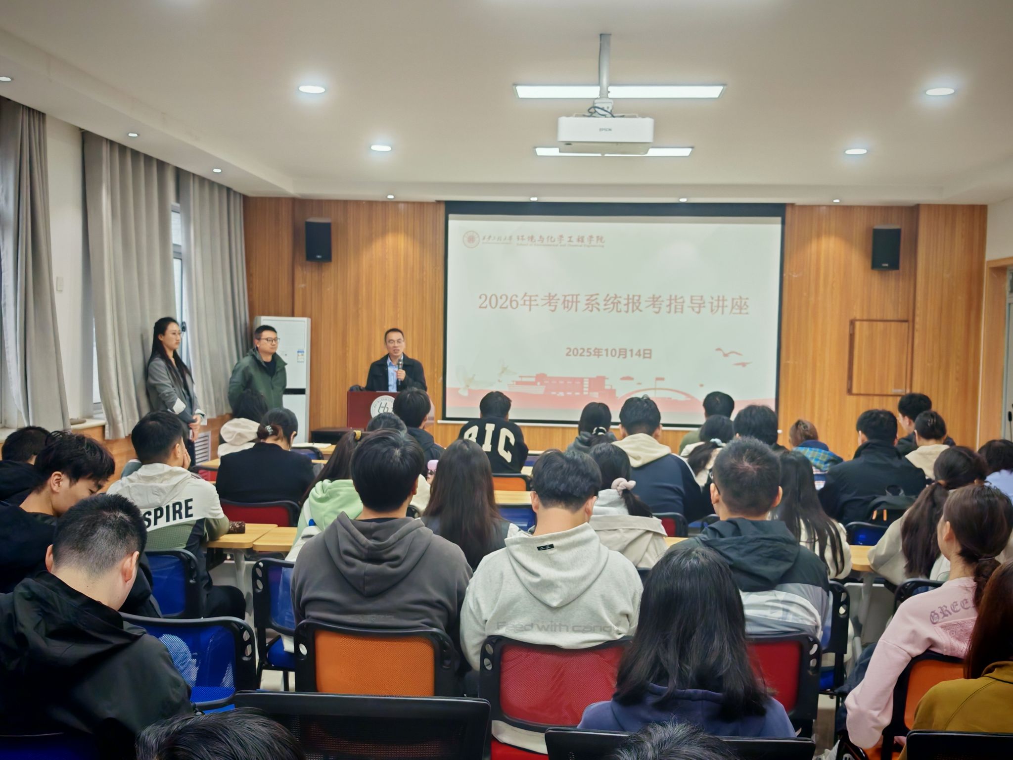 为帮助2026届本科生科学定位考研目标,精准把握报考策略,10月14日,我们在学院507会议室成功举办了2026届考研学生报考指导讲座。本次讲座由学院院长助理、化工系主任刘斌副教授主讲,学院党委副书记林定武主持,学工办主任朱瑾、2022级辅导员任子瑜及大四年级考研学子共同参加了此次会议。讲座伊始,刘斌直击核心,围绕“目标院校的选择”这一关键问题为学生们进行了深入剖析。他结合详实的数据与丰富的案例,指出选择院校时应...