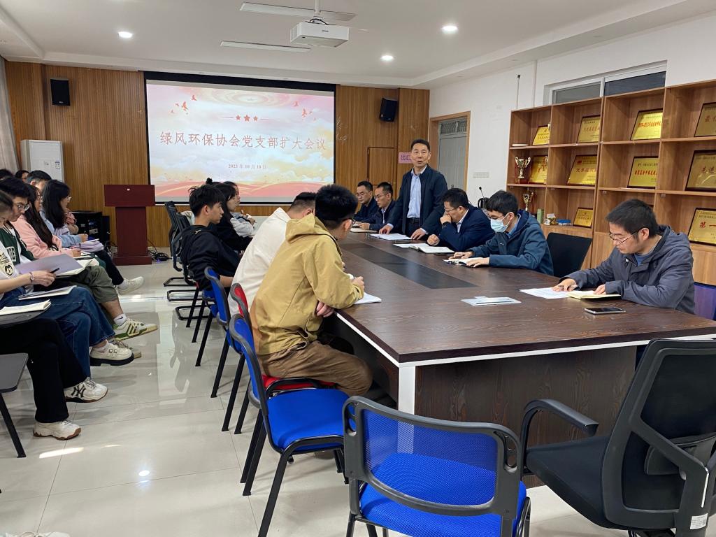 2023年10月10日中午,suncity太阳新城绿风环保协会党支部扩大会议在8号楼507会议室举行,出席会议的有suncity太阳新城党委书记胡西民、学院副院长兼“绿风”党支部书记武占省、党委副书记林定武、、协会指导老师李庆、李云峰、韩元元等以及“绿风”全体成员。本次会议旨在加强协会党组织建设,提高党员干部政治素质,推动协会事业发展。会议由“绿风”党支部副书记侯康同志主持。