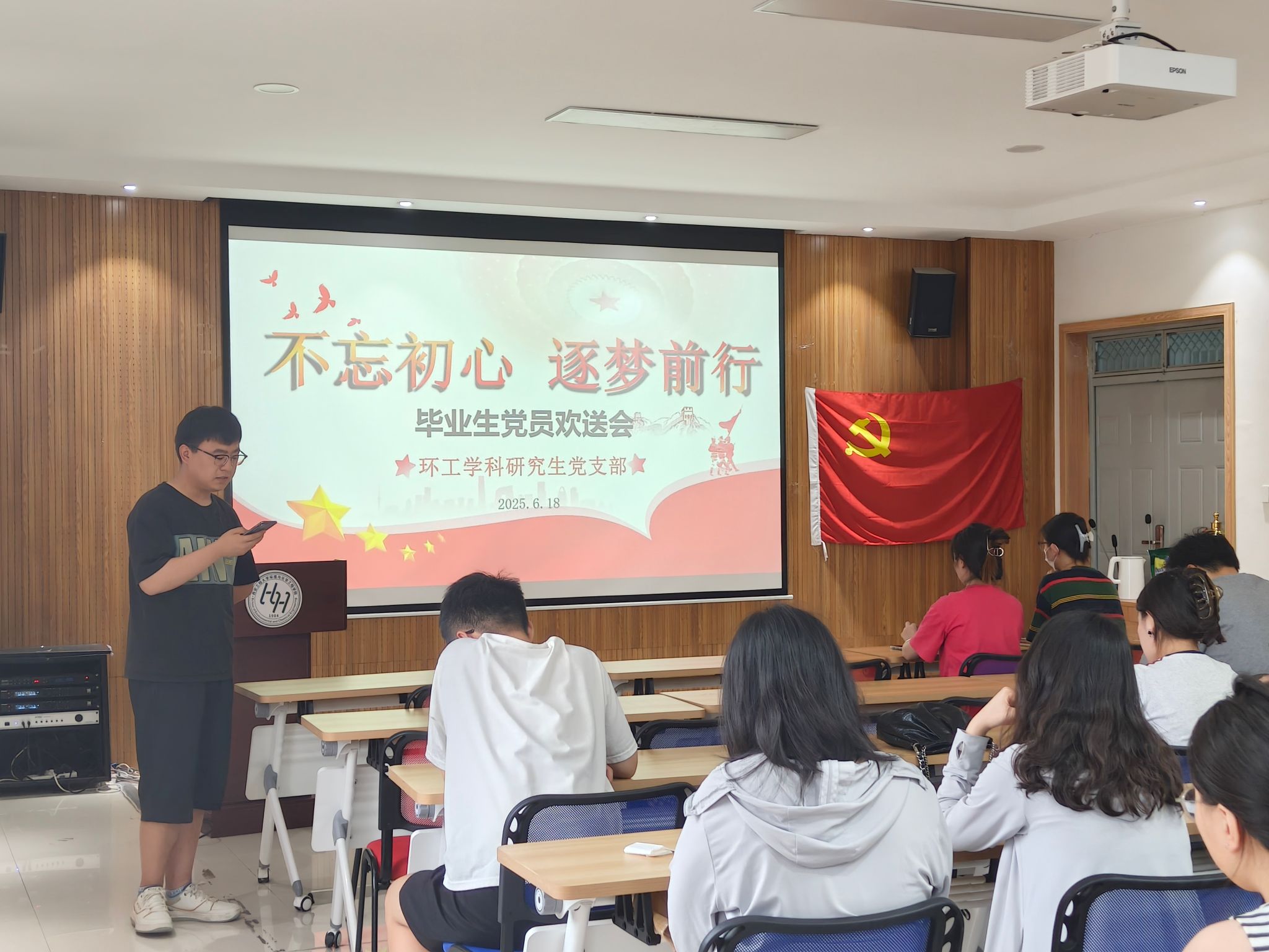2025年6月18日,在毕业生离校之际,环工学科研究生党支部在507会议室开展“不忘初心,逐梦前行”毕业生党员欢送会。党支部书记刘婷婷主持会议,环工学科研究生党支部全体党员参加。