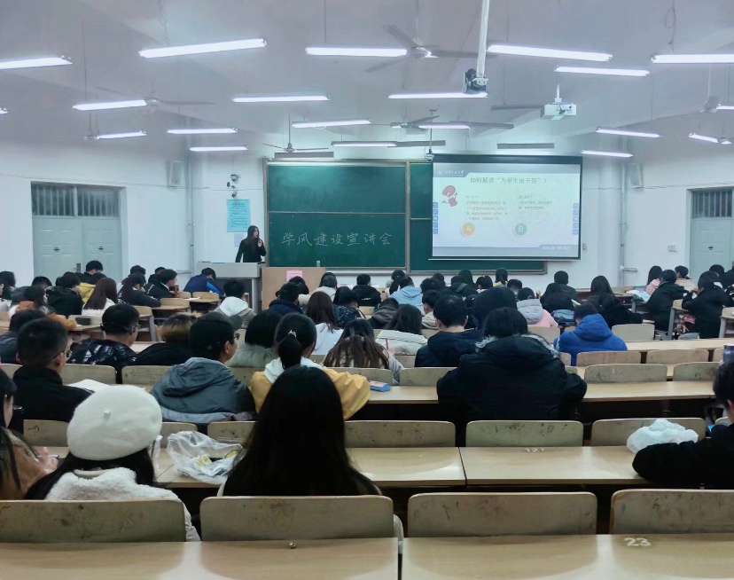 为加强学院学风建设,倡导诚信考试 ,我们于12月19号在B座教学楼133教室召开学风建设宣讲会及考风考纪动员。会议由2019级辅导员刘梦雅主持。