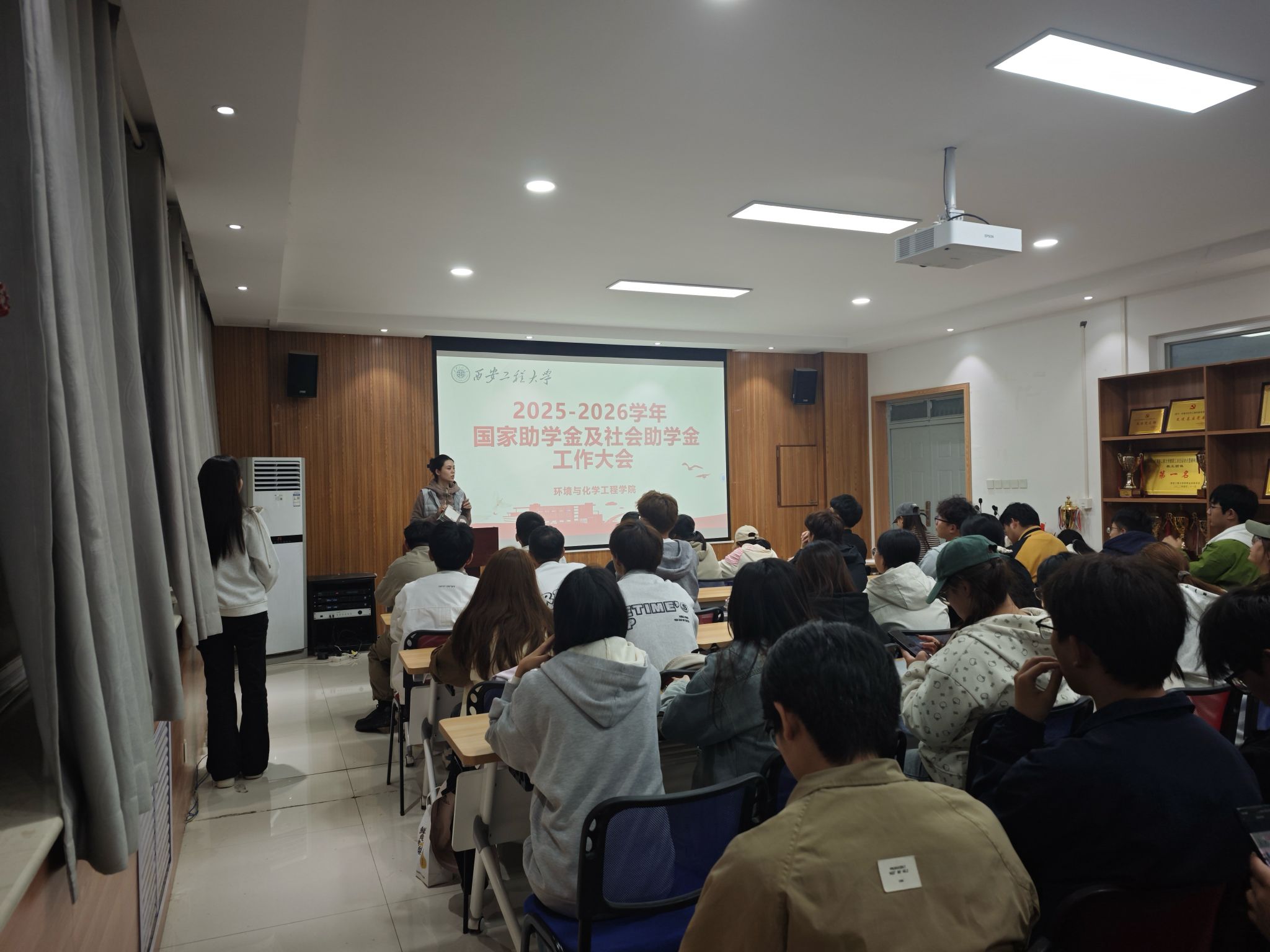 为扎实推进资助育人工作,确保奖助学金评审公平、规范、高效,10月14日,我们在环化楼507会议室召开2025年本科生奖助学金政策宣讲会。资助专项辅导员盖潇宇、各年级班长、团支书及评议小组代表参加会议。