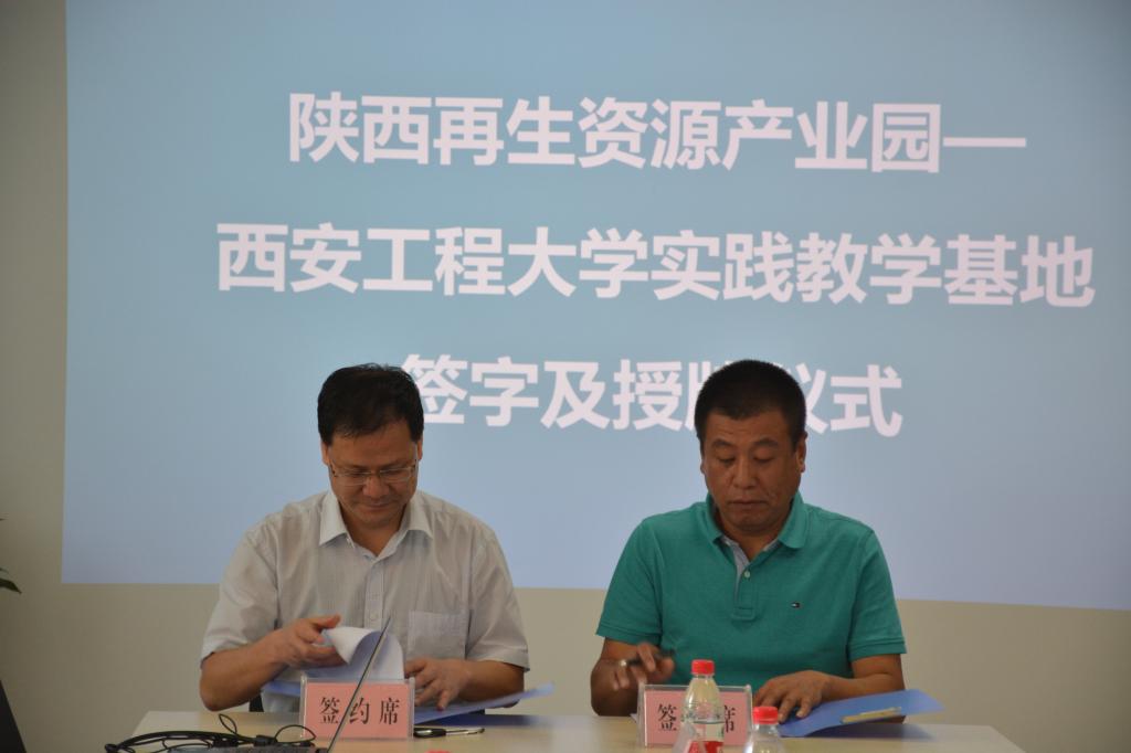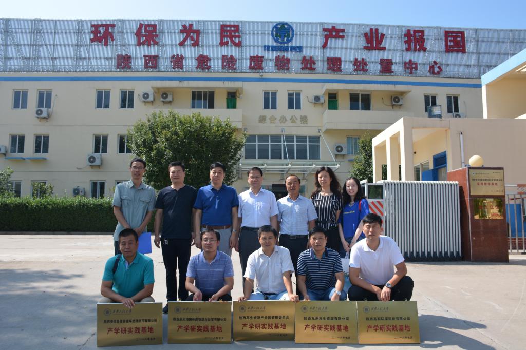 学院院长张洛红分别与陕西再生资源产业园管理委员会、陕西新天地固体废物综合处置有限公司、陕西安信显像管循环处理应用有限公司、陕西九洲再生资源有限公司、陕西高科环保科技有限公司的负责人签订了产学研实践基地协议书,副院长常薇对相关企业进行了授牌。