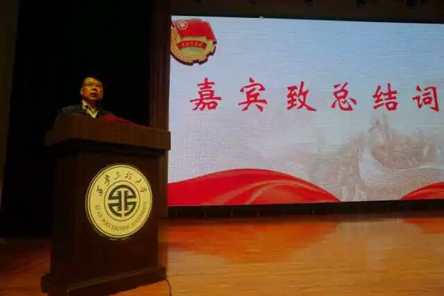 林定武老师宣读获得五四青年、优秀运动员,运动会优秀工作者、科技类竞赛获奖表彰决定。本届运动会,学院团总支、学生会通力合作、全力以赴,做好了组织和服务工作,保证了运动员有序参加各项赛事,有力的提升了学生干部的工作能力。团总支就一年来科技文化工作做了表彰,激励广大同学积极参与科技作品的竞赛,加强专业社团建设,集思广益,团结协作,力争作品有质量、有创意、有亮点。并对获得学院五四青年的同学进行了表彰,希望能在学生中发挥典型示范榜样作用。获奖学生代表毛思寒在发言中说:感谢学院的关心和鼓励,承载着这份动力,向着更高更远的目标迈进。