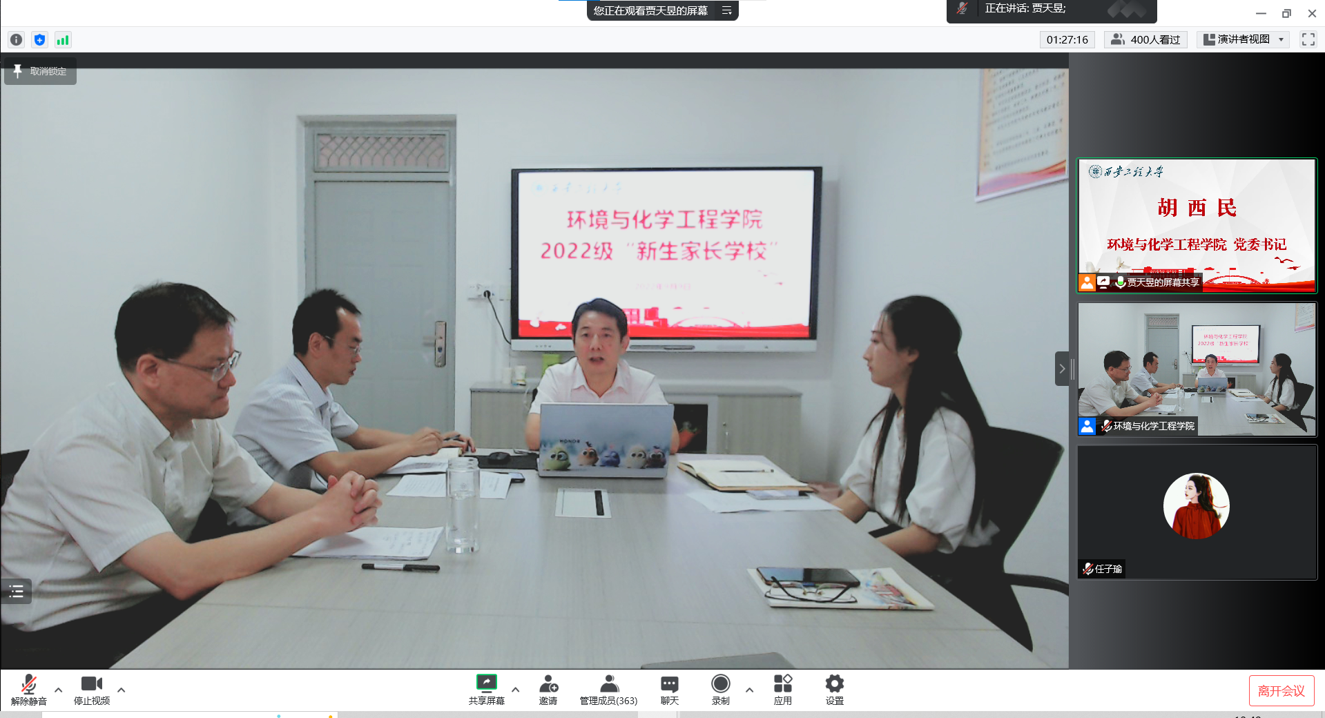 为帮助新生更好的适应大学生活,密切学院与新生家长的联系,搭建家校协同育人工作平台,suncity太阳新城于9月9日上午9:30在临潼校区8号楼238会议室召开线上2022级本科新生家长学校活动。学院党委书记胡西民、院长张洛红全体辅导员以及360余名新生及家长参加了本次活动。活动由学院副书记林定武主持。