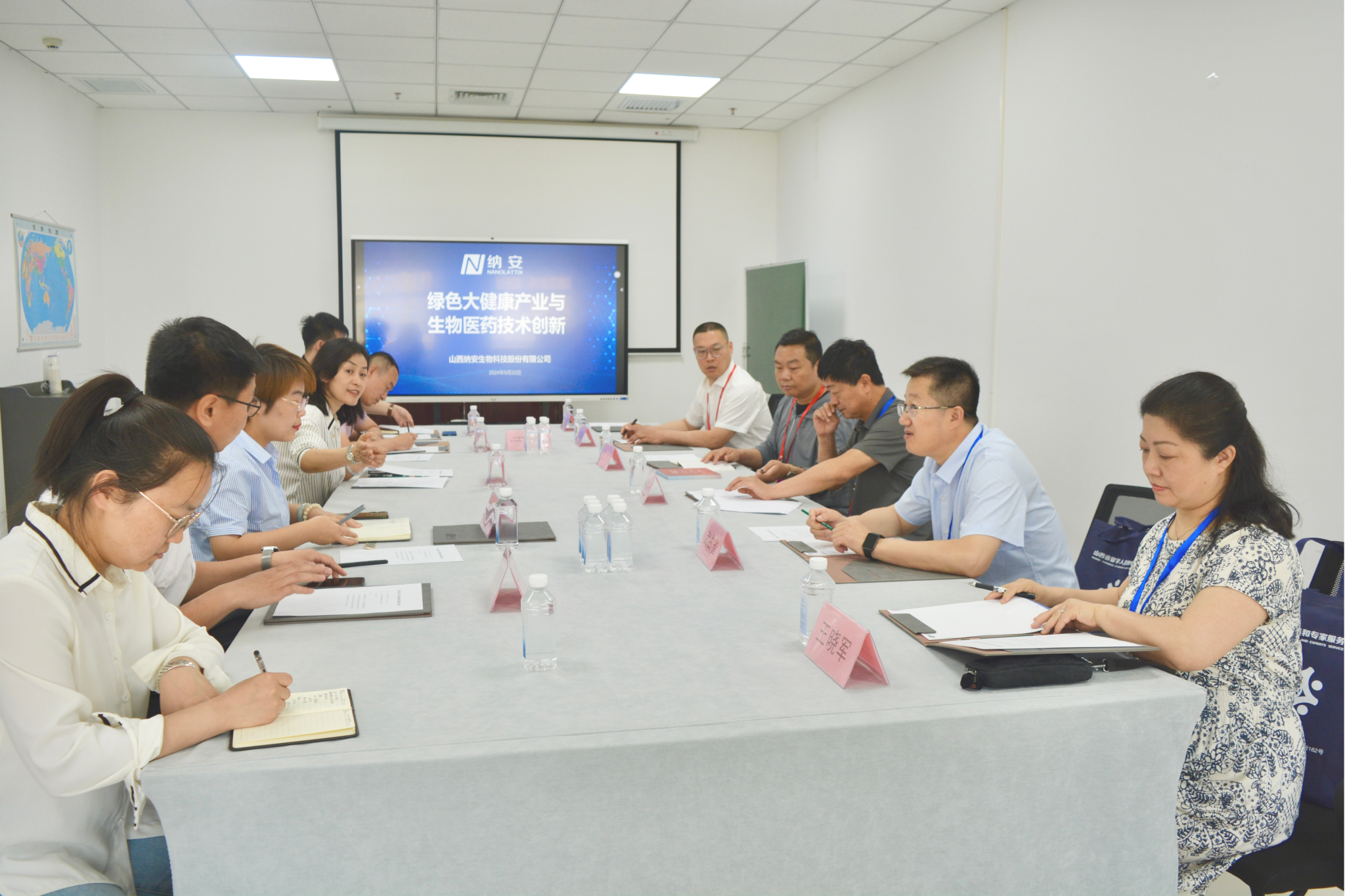2024年5月22日,应山西省人力资源和社会保障厅留学人员和专家服务中心的邀请,我们主持工作副院长武占省教授与生物工程系主任王晓军副教授参加了“专家服务基层“智慧三晋”入企行动——走进山西转型综改示范区”活动,参观了山西纳安生物科技股份有限公司并进行了座谈。座谈会由山西转型综改示范区人才中心籍丽宏主任主持,参加座谈会的有山西省人社厅留专中心主任尚建宁、人才综合科科长王力、山西纳安生物科技股份有限公司研发中心主任郝花花、人力资源总监李健等。籍主任首先介绍了山西转型综改示范区的基本情况,留专中心尚主任介绍了此次活动的目的是促进企业与专家之间的交流,提升助企专家服务企业效能。纳安生物郝主任介绍了企业的基本情况及在生物医药和大健康领域的技术需求。武院长介绍了我们及我们的基本情况,针对郝主任提出的技术需求介绍了我们在相关领域的科研工作进展情况,表示愿与企业开展务实合作,将结合我们专业特长和企业发展需求,积极帮助企业解决技术难题。王主任介绍了生物工程系的基本情况及我系相关教师在生物医药和大健康领域的科研情况。院企双方一致认为在企业产品研发、技术改造升级及人才培养等多方面有良好的合作前景,会建立良好的沟通渠道,加强交流合作,推动“专家助企”服务工作走深走实,取得实效。座谈会后实地参观了企业的生产车间和研发中心,详细了解了企业的产品研发、生产流程和市场应用情况。