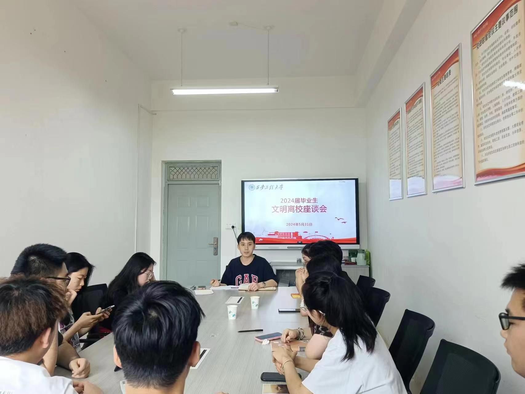 2024年5月31日,我们在环化楼238会议室召开2020届本科毕业生文明离校座谈会,毕业班辅导员张易泽,20级班长、团支书参加了本次会议。