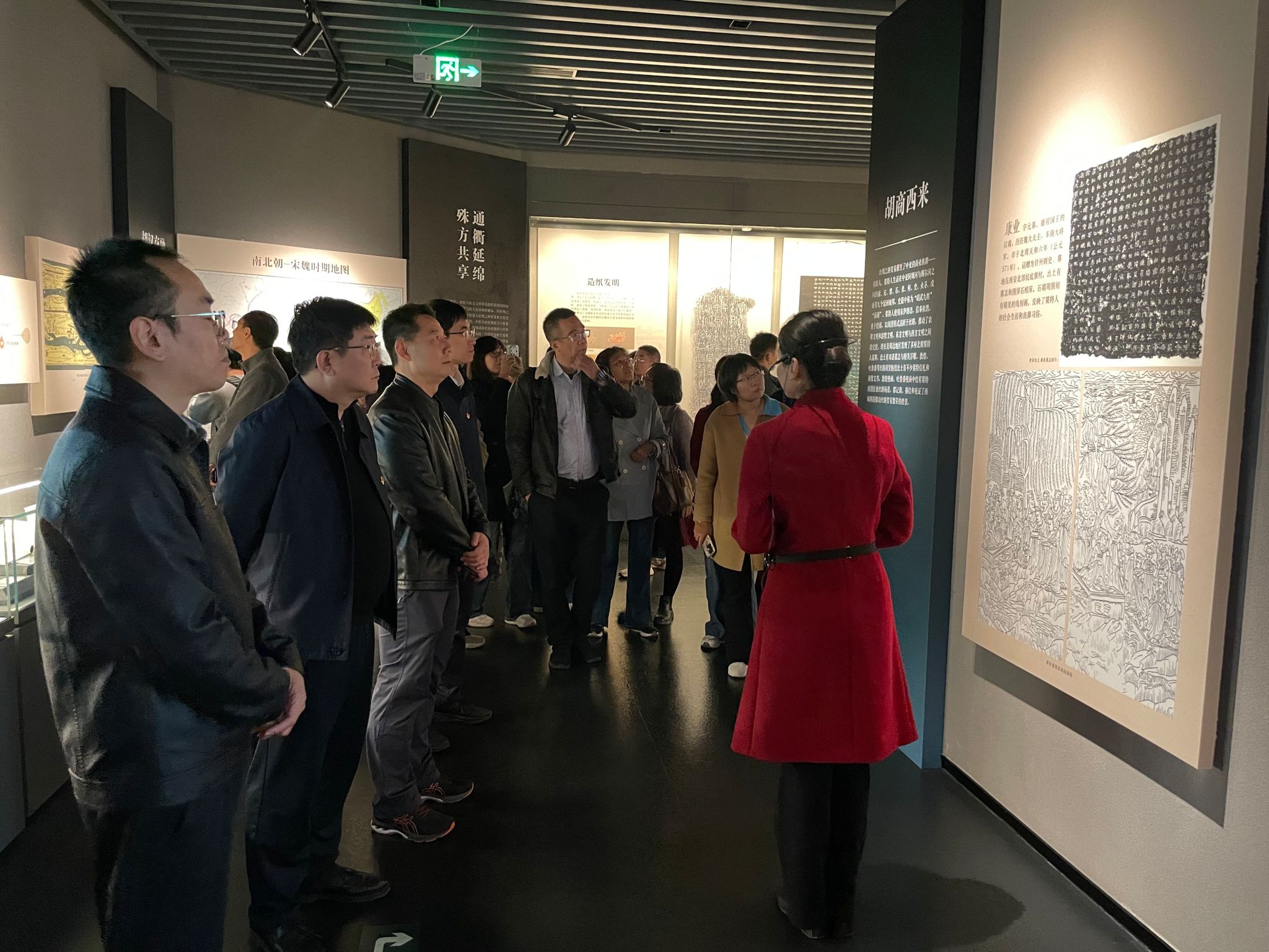 随后,师生前往国家版本馆西安分馆参观学习。大家沿着历史的脉络,认真观摩了各类承载中华文明印记的珍贵版本资源,聆听讲解员对保藏中心文济厅、中华文化经典版本展、丝绸之路版本展的介绍,沉浸式体验了丝路沿线国家间文明交流留下的文化积淀,深切感受中华民族绵延不绝的文化发展与近代以来赓续不断的红色精神。