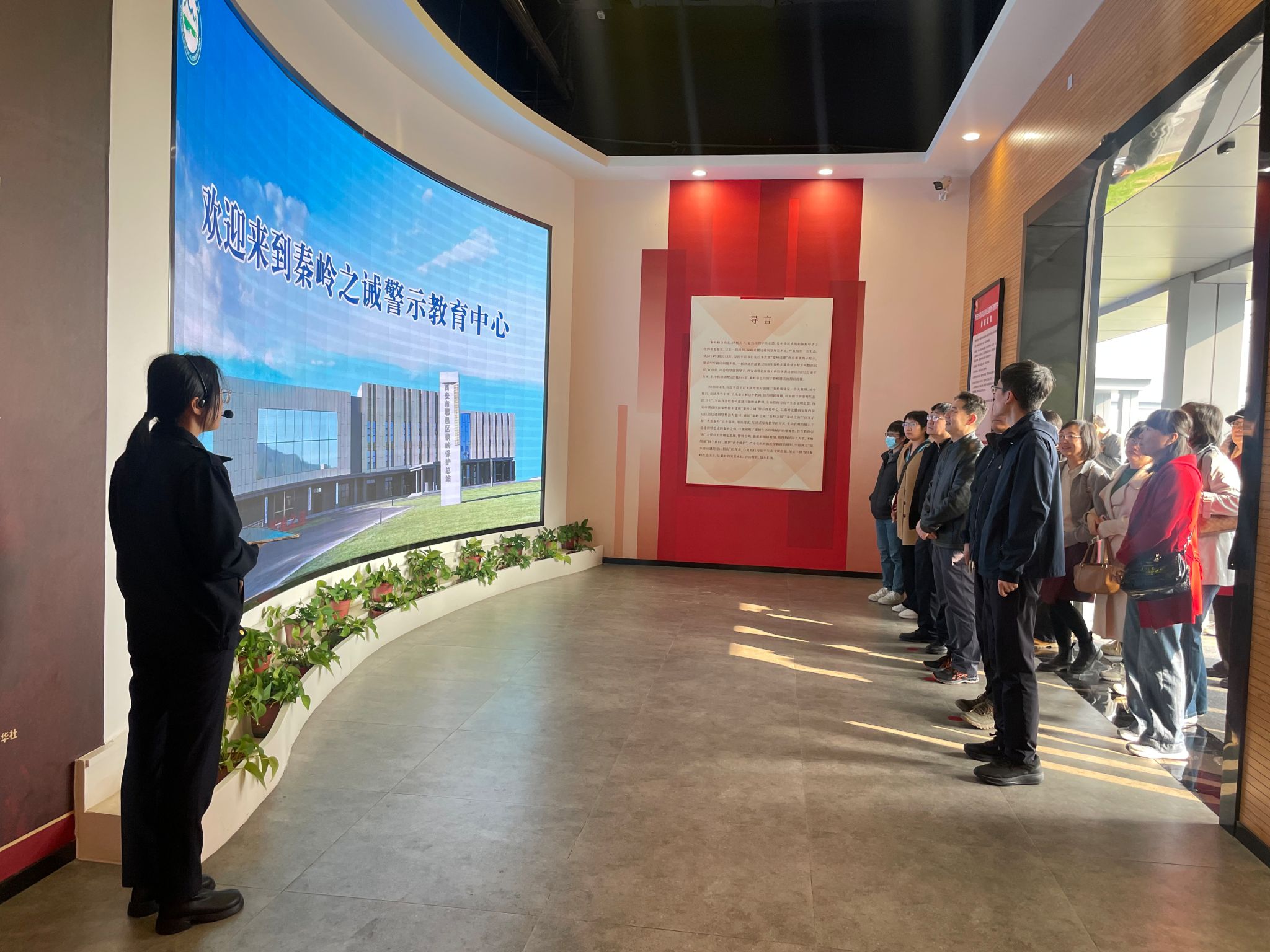 在首站——秦岭之诫警示教育中心,师生党员依次参观了“秦岭之诫”“秦岭之殇”“秦岭之治”“以案示警”“大美秦岭”5个主题展厅,通过认真聆听讲解,观看图文影像和实物展示,深入了解发生在秦岭北麓的违建别墅问题及其深刻教训,切实认识到保护好秦岭生态环境的重要性。讲解员还介绍“网格化、数字化、志愿化”等秦岭创新治理模式,展示无人机群、高地摄像头、卫星遥感等多种先进在生态监测中的运用,使师生切身感受到科技赋能生态保护的现实成效。