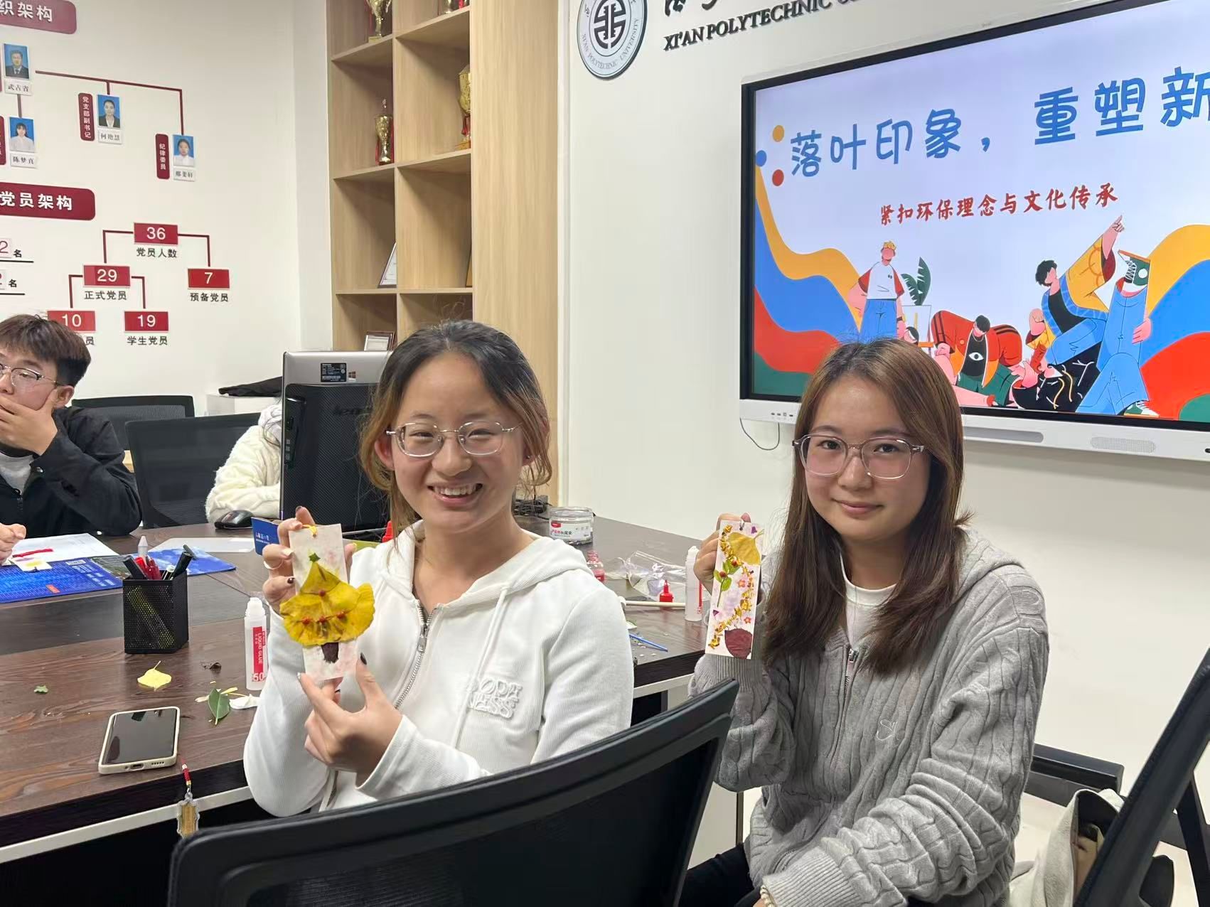 活动前期,手工小导师毛姗妮同学精心筹备,提前收集校园内形态各异的银杏叶、梧桐叶等落叶及花瓣,并准备了书签、拓印工具、颜料等材料,为同学们营造了沉浸式的手工创作环境。