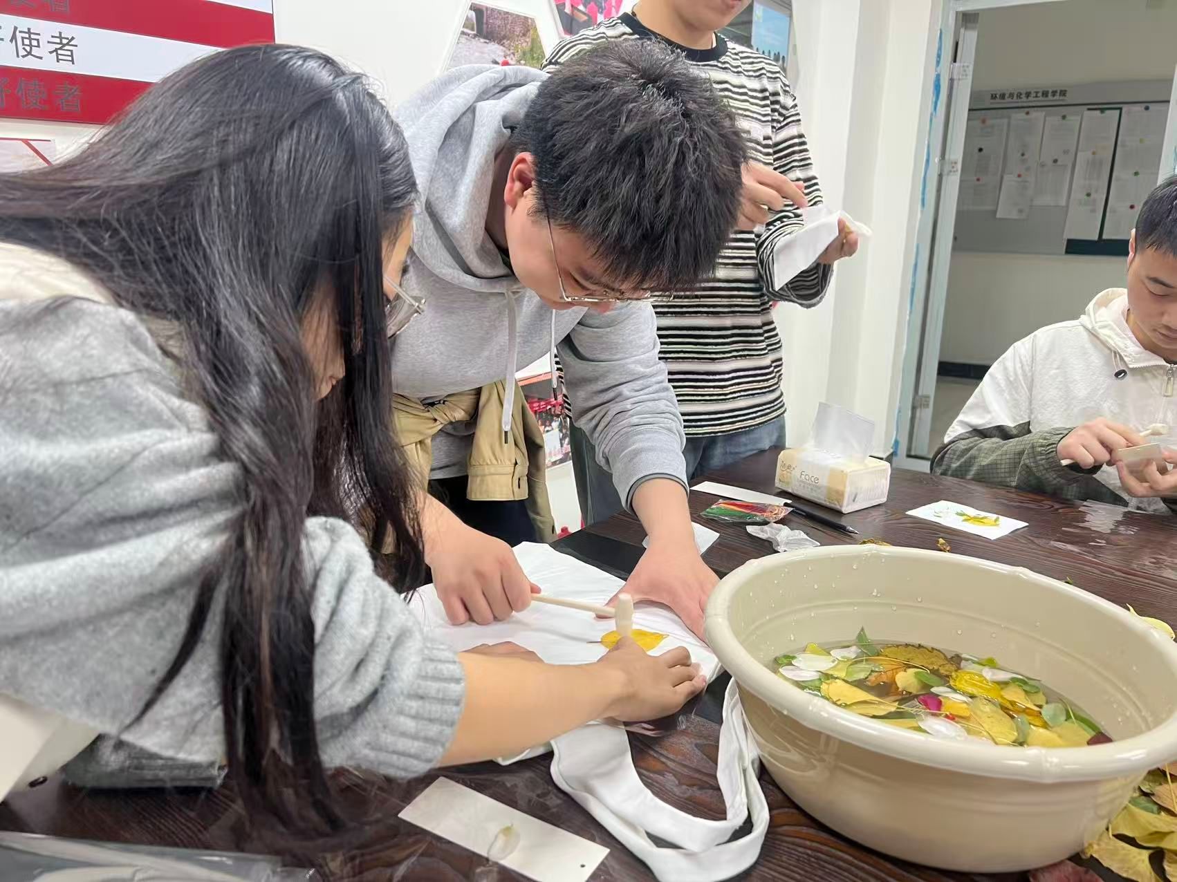 11月10日,我们“化蝶”手工坊在“一站式”学生社区举办“落叶印象,重塑新生”植物拓印活动。本次活动吸引了二十几位学生踊跃参与。