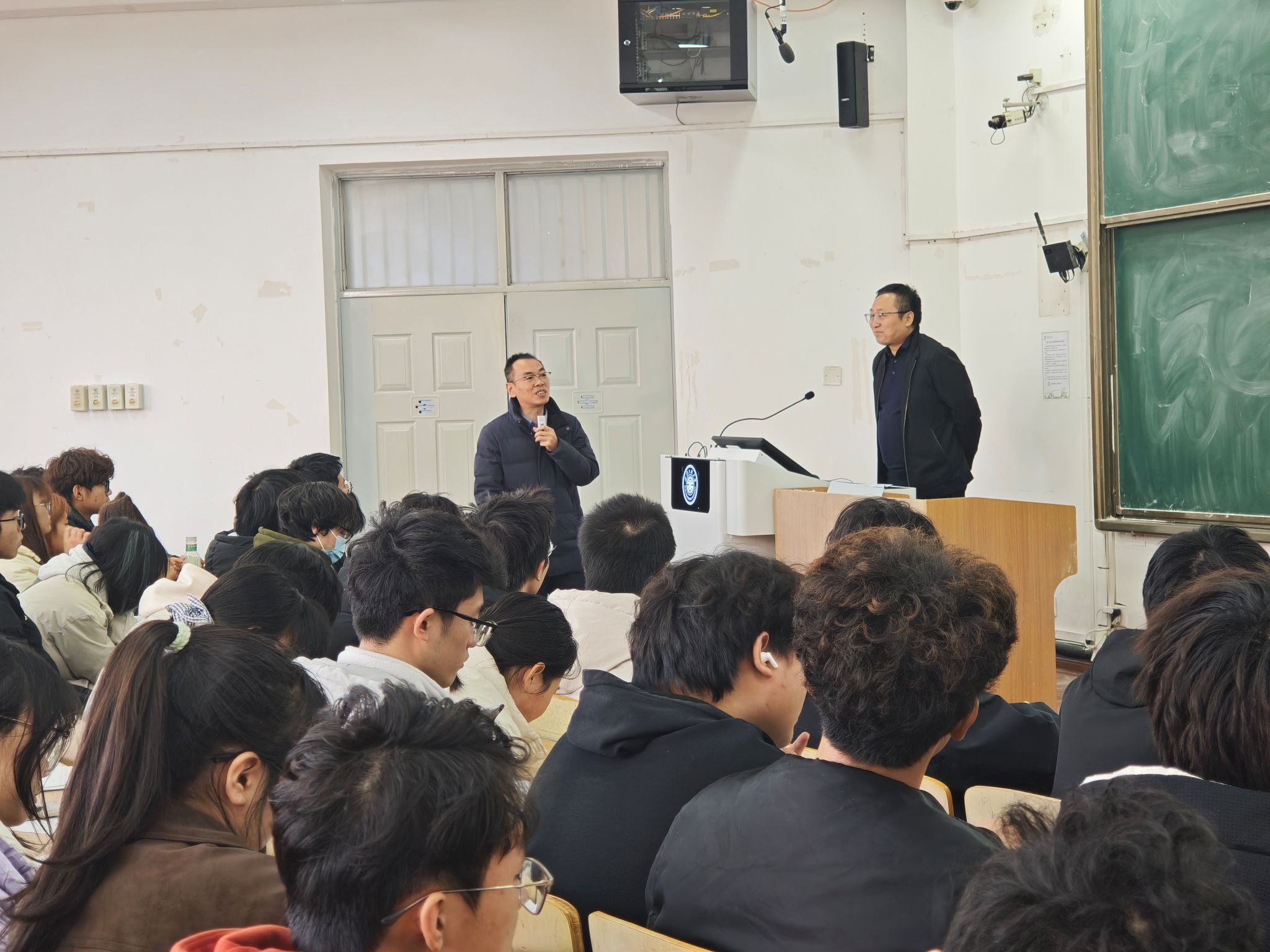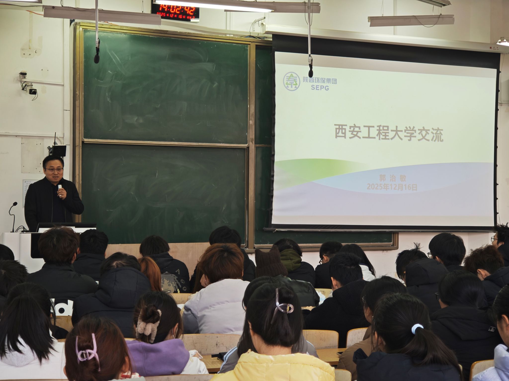 12月16日,我们第十九期“绿风·环化论坛”于临潼校区教学楼B135教室圆满举行。本次论坛特邀陕西环保集团中圣环境公司党委书记、董事长、我们95级环境工程专业校友郭治敏先生重返母校,以“人生·专业·未来”为主题,为2025级环境工程专业学生带来了一场内涵深刻、视野开阔的专题报告。学院党委副书记林定武、2025级辅导员吕国正出席活动,报告会由环境科学与工程系副主任王理明主持。