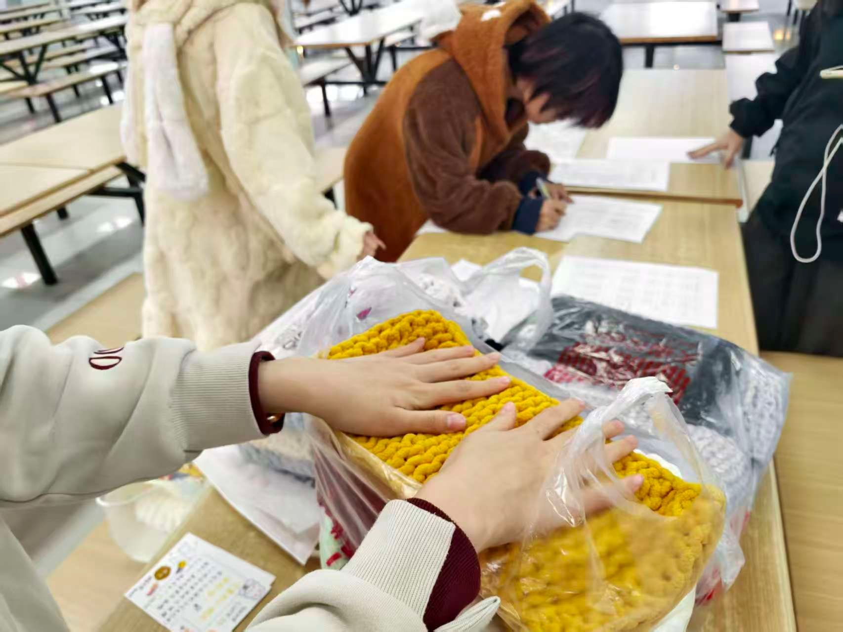 11月30日,活动负责人在学院的组织下,打包好的织物被仔细分类。同学们用手轻抚柔软的毛线,仿佛在确认这份温暖能否抵御寒冬。每一条围巾,都承载着大学生们的巧思与心意。这些凝聚着爱意的物品,即将踏上“温暖之旅”,奔赴需要它们的地方。11月31日,志愿者们完成了所有织物的分类、打包工作,将凝聚着爱心的围巾、帽子及明信片分别寄往河南省商丘市睢阳区宋集镇沙沃刘小学、四川省内江市市中区电建初级中学校(小学部)以及河南省商丘市睢阳区宋集镇颜集小学。