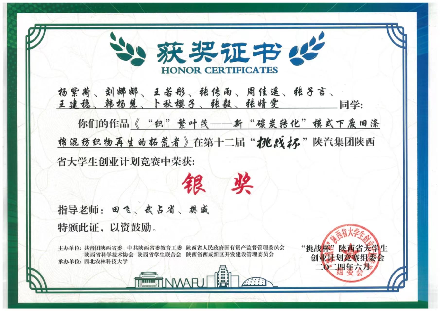 6月7日,第十二届“挑战杯”陕汽集团陕西省大学生创业计划竞赛闭幕式暨颁奖仪式于西北农林科技大学举行。我们4个项目进入决赛,均获得银奖,实现了获奖数量的突破。