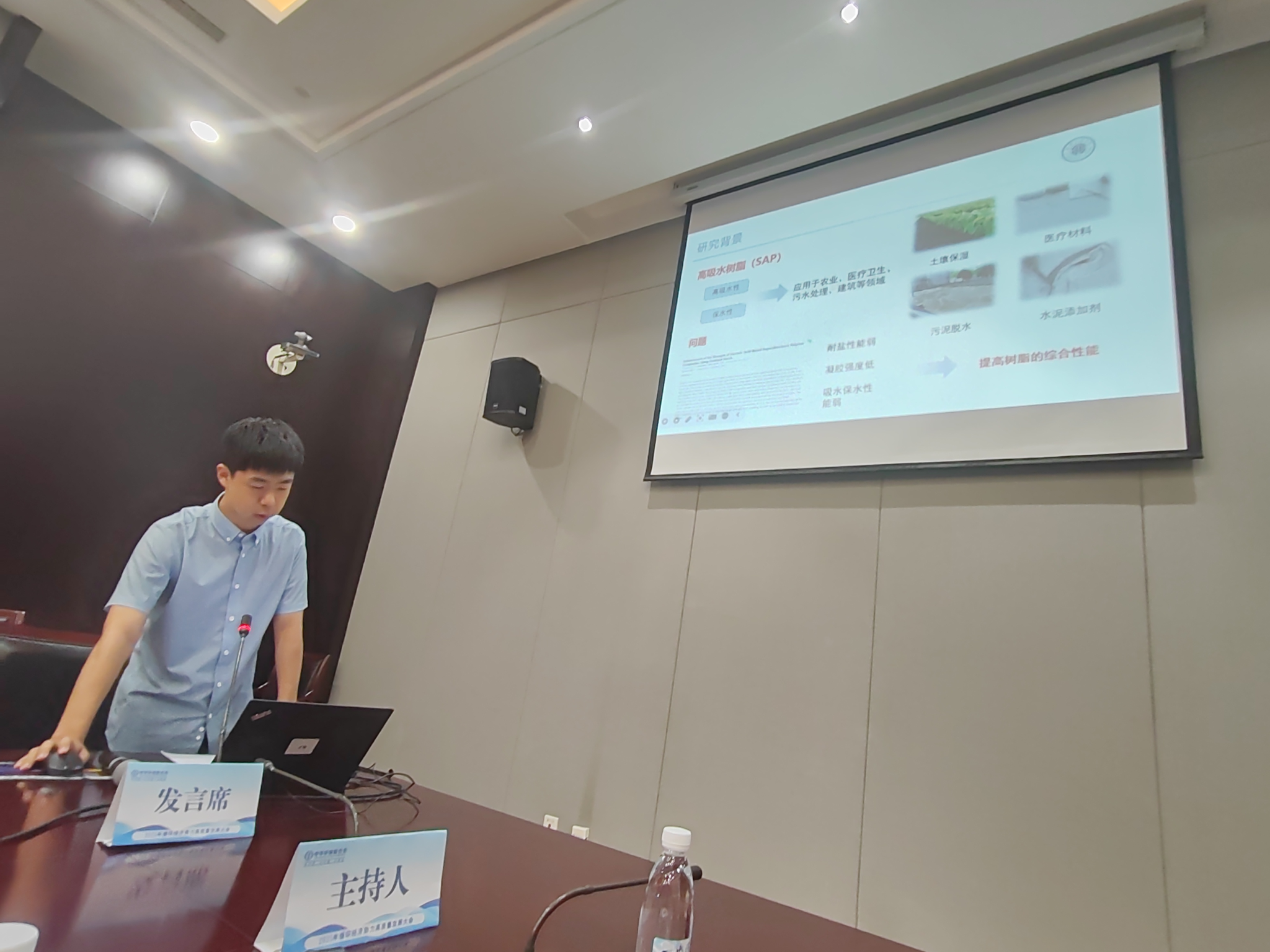 我们郭雅妮教授指导的研究生阴禹帆参加了此次会议,阴禹帆同学在农林废弃物综合利用分会场作了题为“花生壳纤维素-腐植酸基吸水树脂的制备及性能研究”的学术报告,汇报了花生壳废弃物回收利用现状和功能化应用技术的研究成果。会后,参会人员及代表围绕着农林废弃物的利用价值、利用途径和方法等方面进行了深入交流与讨论。